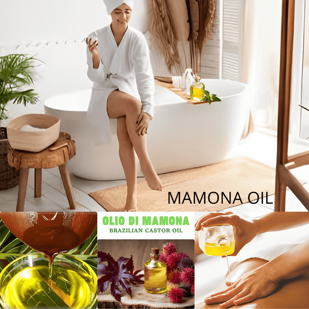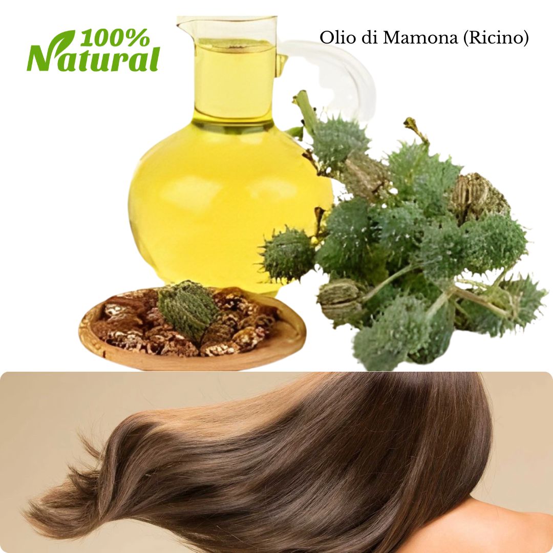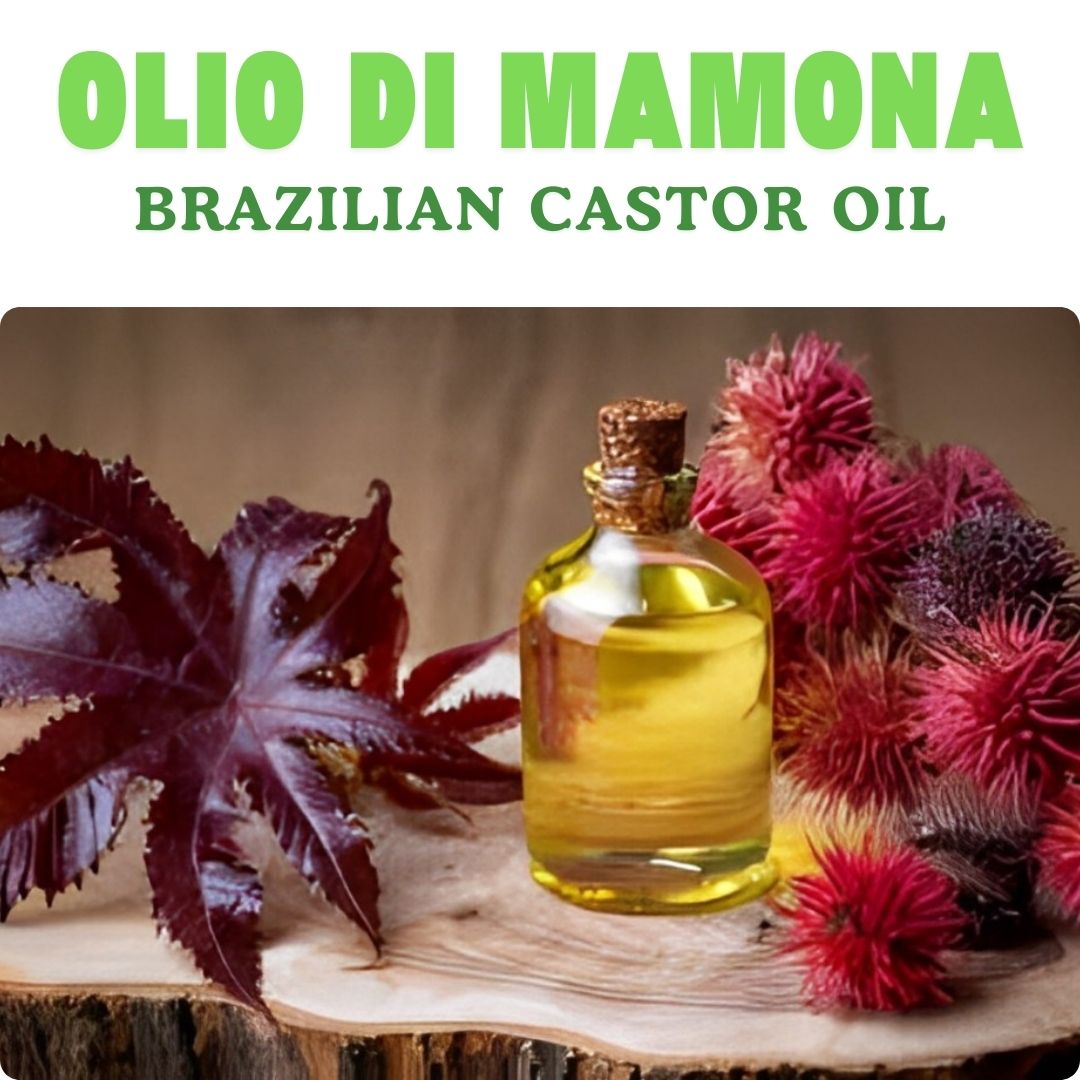 L’olio di MAMONA (Ricinus communis) è un olio vegetale denso e viscoso, dall’odore forte e ben caratteristico, possui muitos nutrientes como: ômega 6, minerais, vitamina E e proteínas . Nell’industria cosmetica, l’olio di MAMONA viene utilizzato come ingrediente nei prodotti per capelli e pelle grazie alle sue proprietà idratanti ed emollienti. L’olio di MAMONA contiene acido ricinoleico, che ha proprietà antinfiammatorie e antibatteriche, queste proprietà rendono l’olio di MAMONA utile per il trattamento di una varietà di condizioni della pelle come acne, eczema e psoriasi.