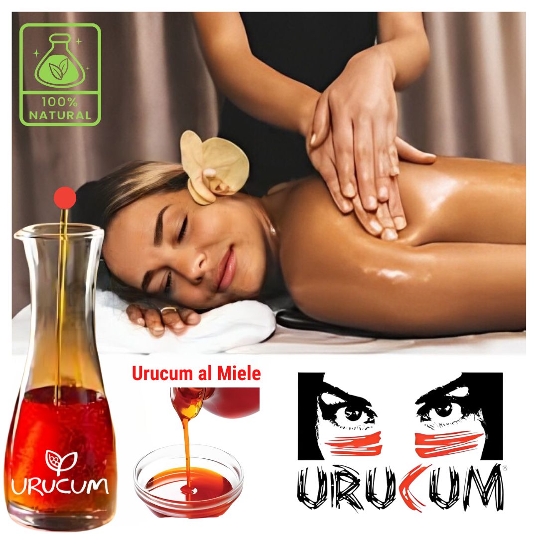 PER I MASSAGGI, diluire in proporzione 50 ml di olio di URUCUM con 100 ml di olio vettore a scelta (ad esempio olio di cocco, olio di mandorle, olio di vinaccioli, ecc.).