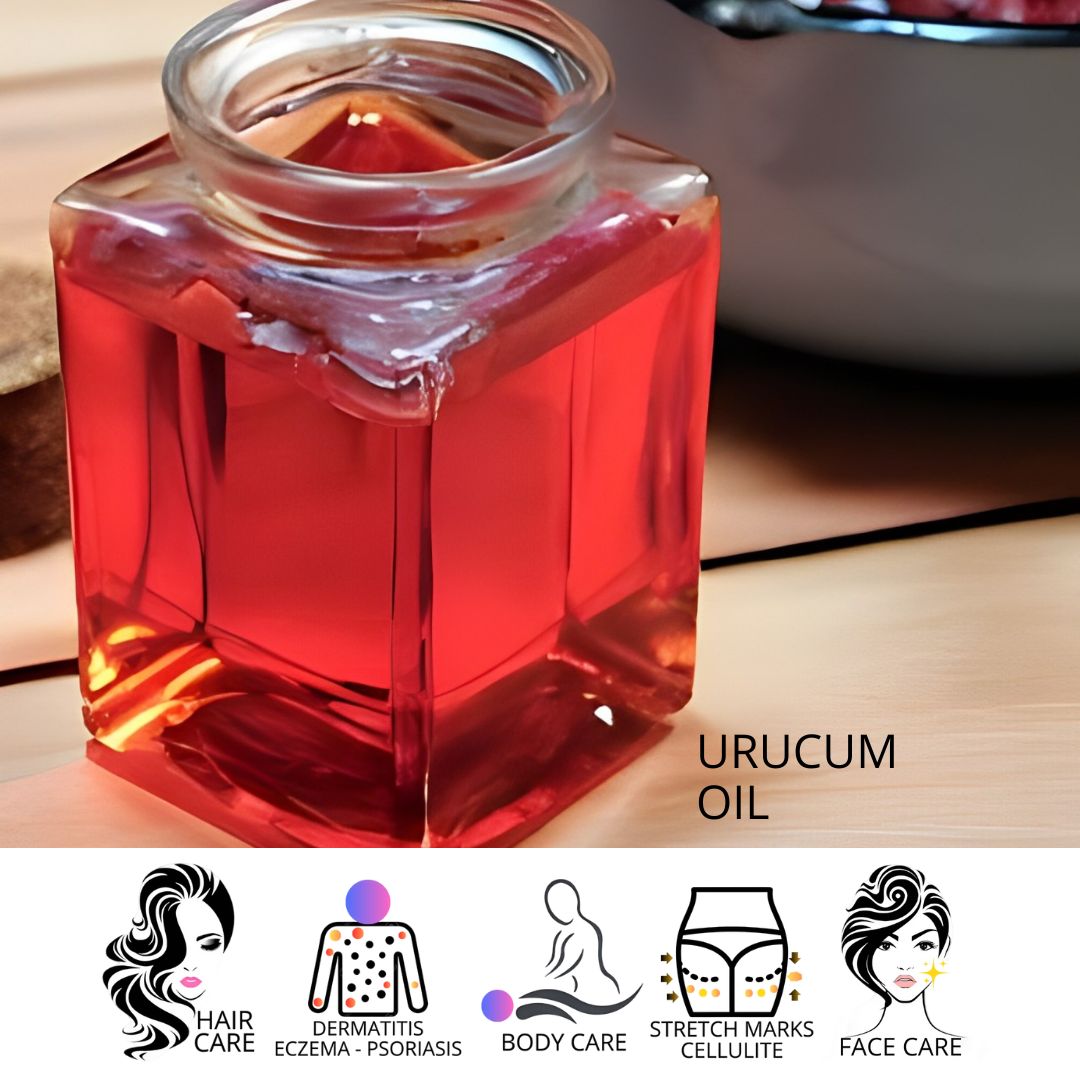 L’olio di URUCUM agisce contro l’invecchiamento ed è un potente antirughe, idratante e nutriente per la pelle, con azione emolliente e calmante nei casi di allergie e irritazioni. L’olio di URUCUM conosciuto anche come abbronzante naturale [favorisce una perfetta abbronzatura dorata]. L’olio estratto dai semi d’URUCUM è un ottimo alleato anche per chi soffre di pelle secca o eccessivamente grassa.